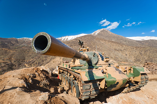 Picture a military vehicle such as the tank shown. To help disguise it, it is painted with colors that blend in with the surrounding landscape. Problem is, the vehicle might move to a different landscape during battle, leaving it more exposed.