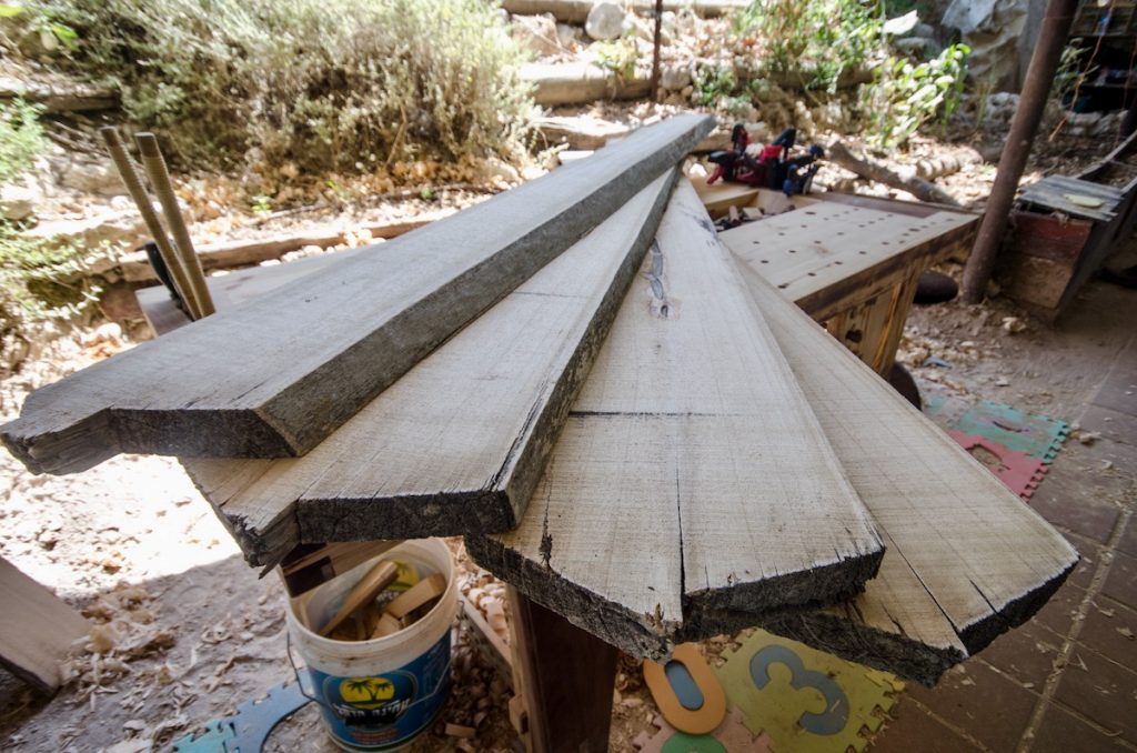 Because Paulownia trees are one of the fastest-growing species in the broad-leaf family (the tree matures and is ready for harvesting at the super young age of ten years old) attempts have been made to commercially grow it beyond its native Far East habit. One such growing attempt took place in Israel but unfortunately did not bear fruits, as the trees did not flourish as expected. In the process of consolidating the plantation, Dan and the farmer agreed that in exchange for helping in cutting down the trees Dan will receive a few logs. After milling the logs on site, Dan had enough lumber for a few projects.