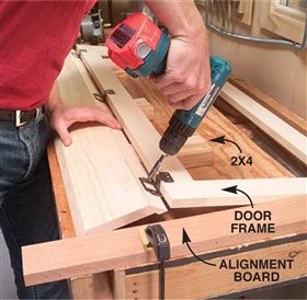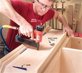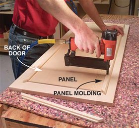 | 14. Nail panel molding to the back of the door frame to hold the 1/4-in. panel in place. Miter the corners of the molding to give your door a finished look inside and out. |