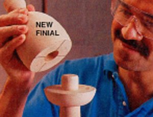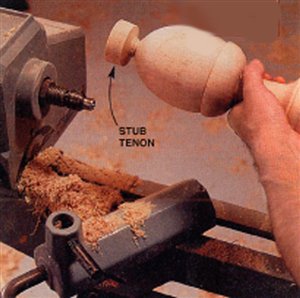 19. Leave a stub tenon at the tip. Saw it off and finish shaping the finial by sanding. The upper section blanks include the extra length you need for this tenon and for mounting on the lathe.