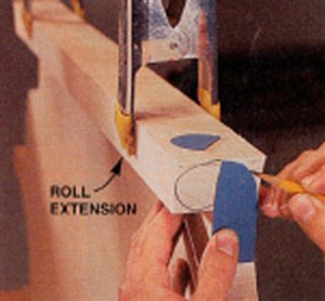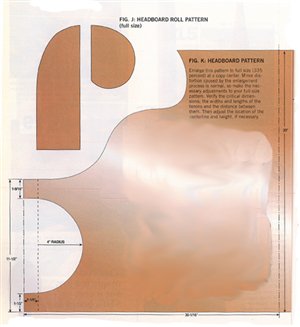 21. After dry-clamping the roll extension (Part F, Fig. A, below), ontp the back of the headboard, draw the rolled shape on both ends of the assembly.