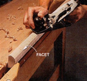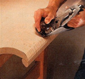 22. Round the roll extension before you glue it to the headboard. Rough out its shape by making beveled cuts on the tablesaw, using the rip fence and a push stick. Then clamp the piece on your workbench and remove the facets with a hand plane.