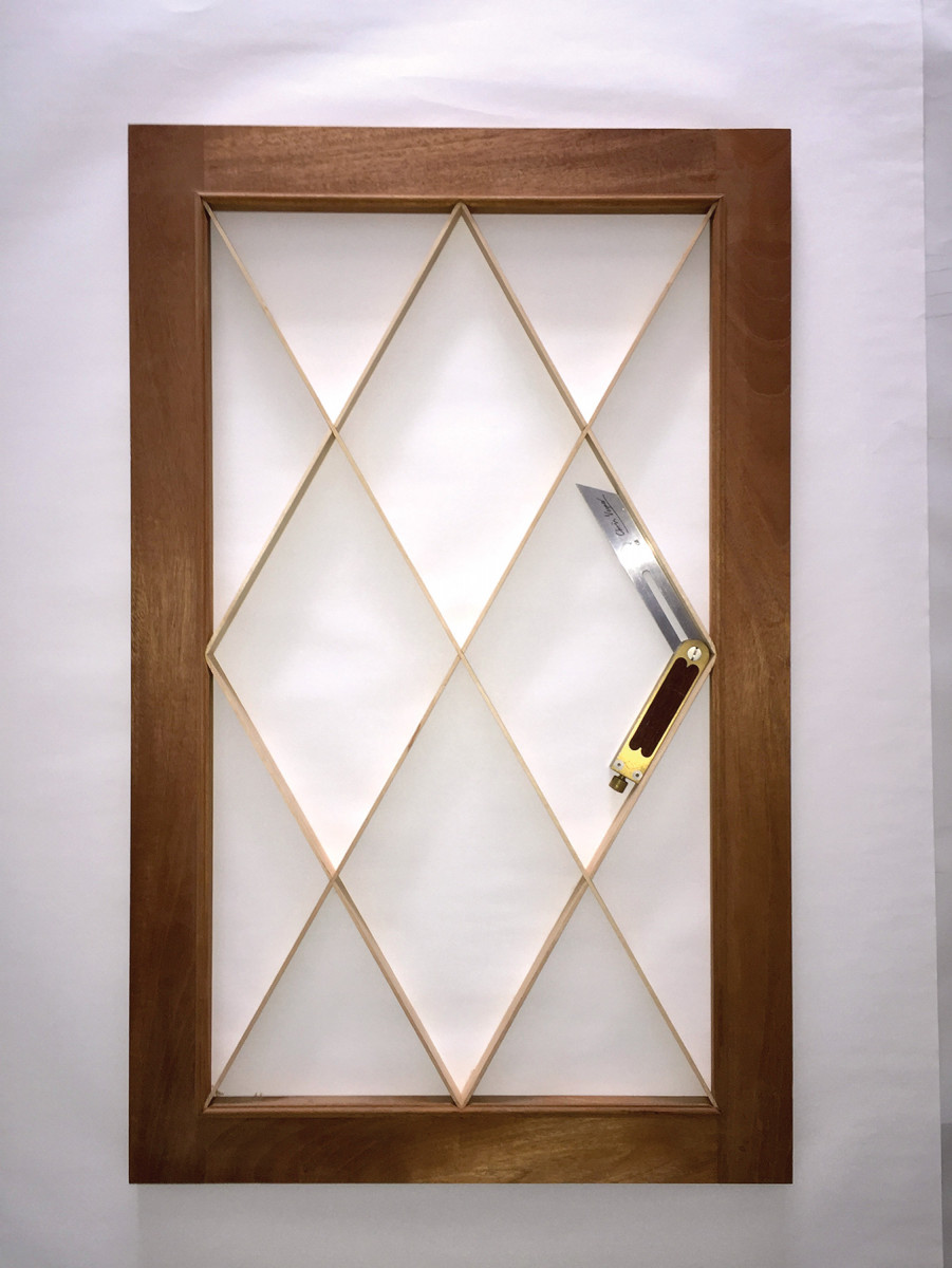 But what really gives this piece presence is the door construction – diamond-paned lights made of maple bars and small mahogany astragal mouldings.