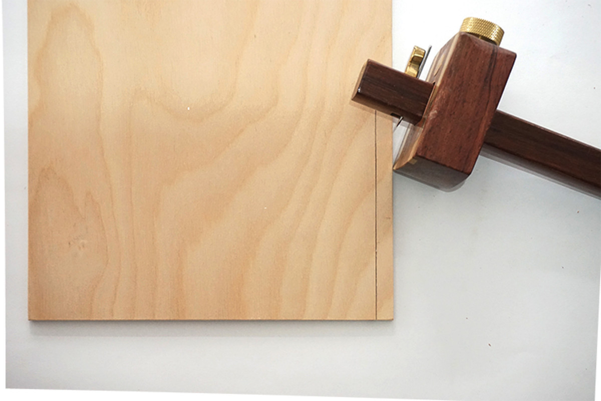 2) Find a piece of plywood that is straight and square. Along one edge, scribe a baseline.