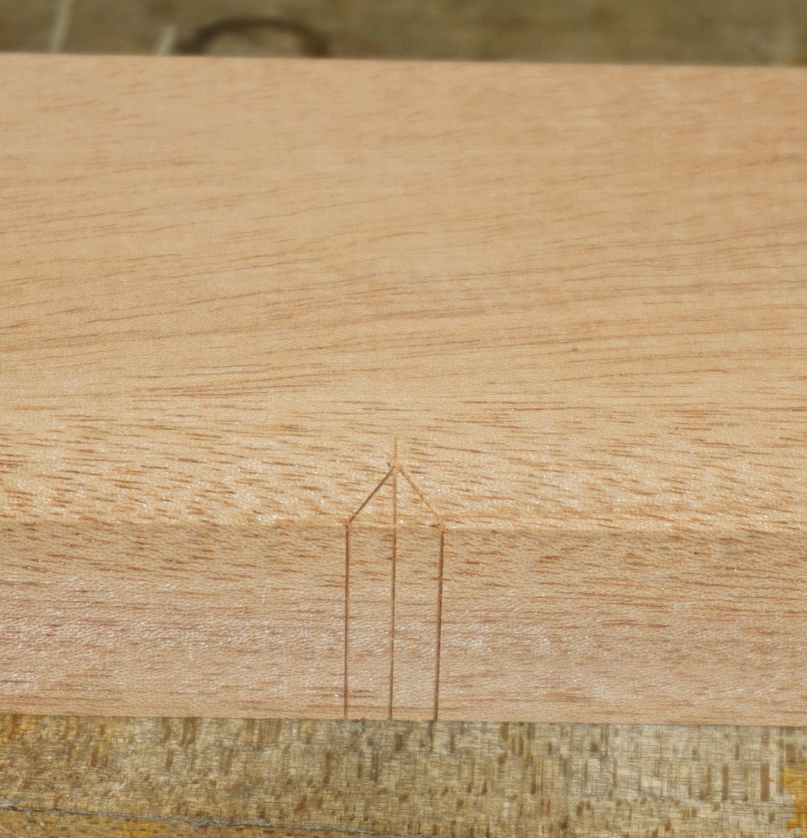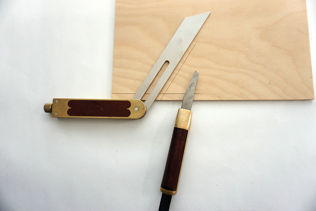 3) Using your set bevel square as the reference, knife a line that intersects the baseline.