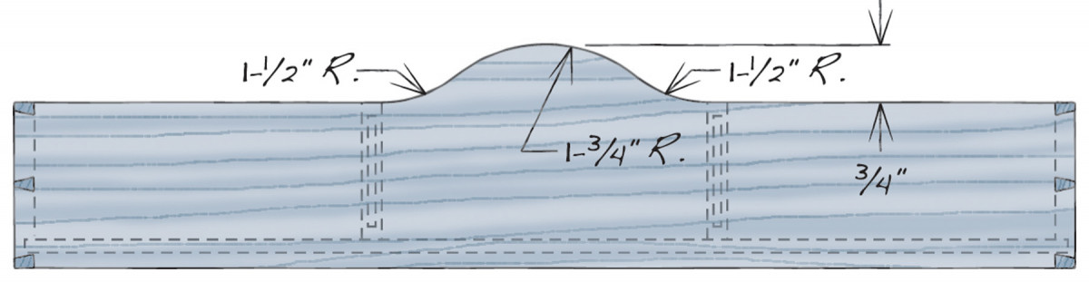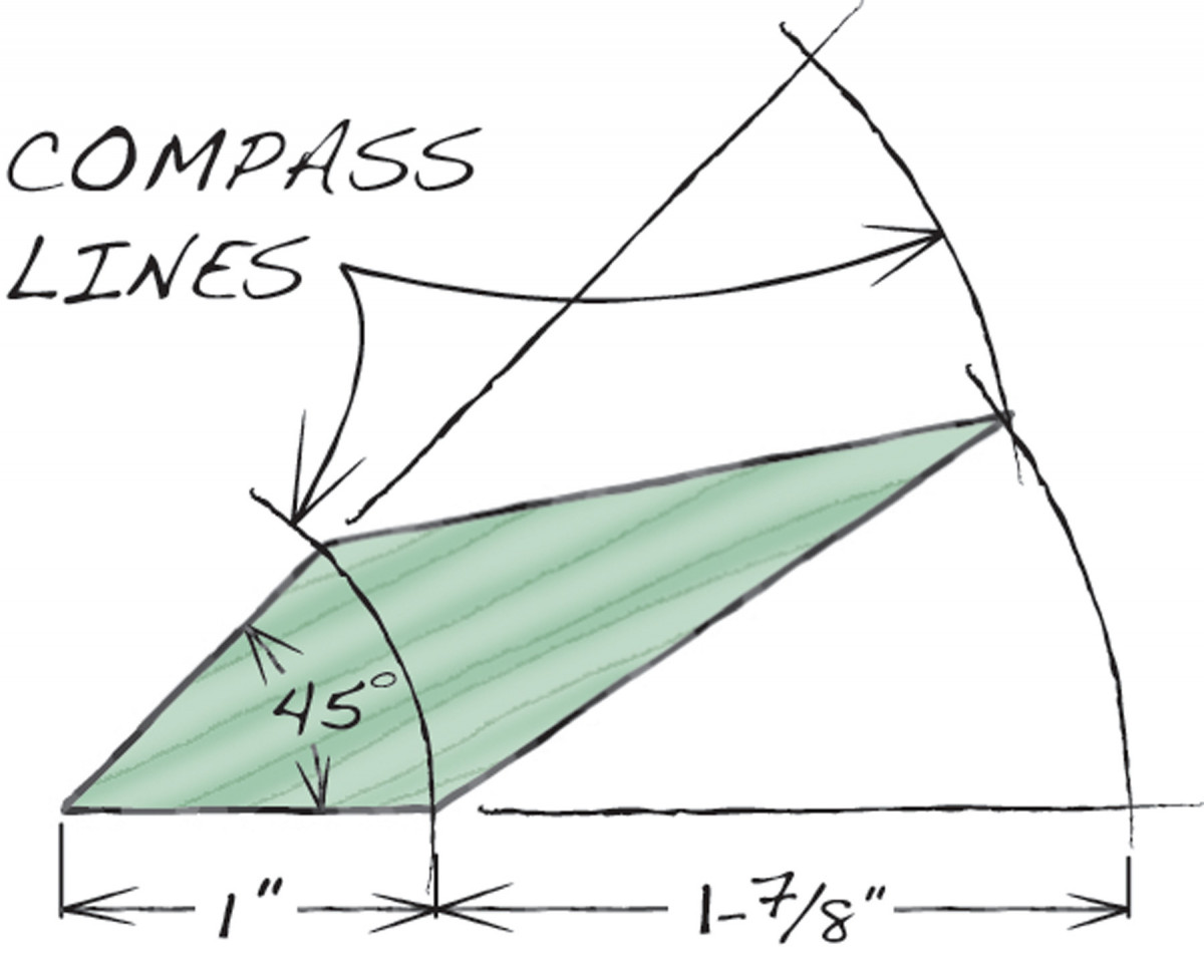b) Crossbanding pieces are 1/2″ long, measured in the direction of the grain. Make enough for about 16 feet in total width.