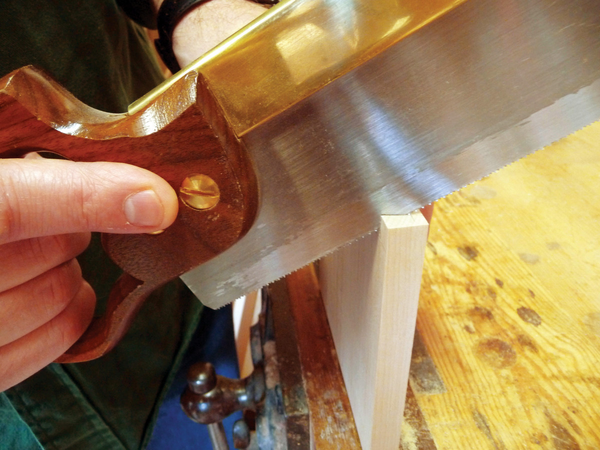 1. Saw the box’s dovetails by hand, beginning with the end pieces.