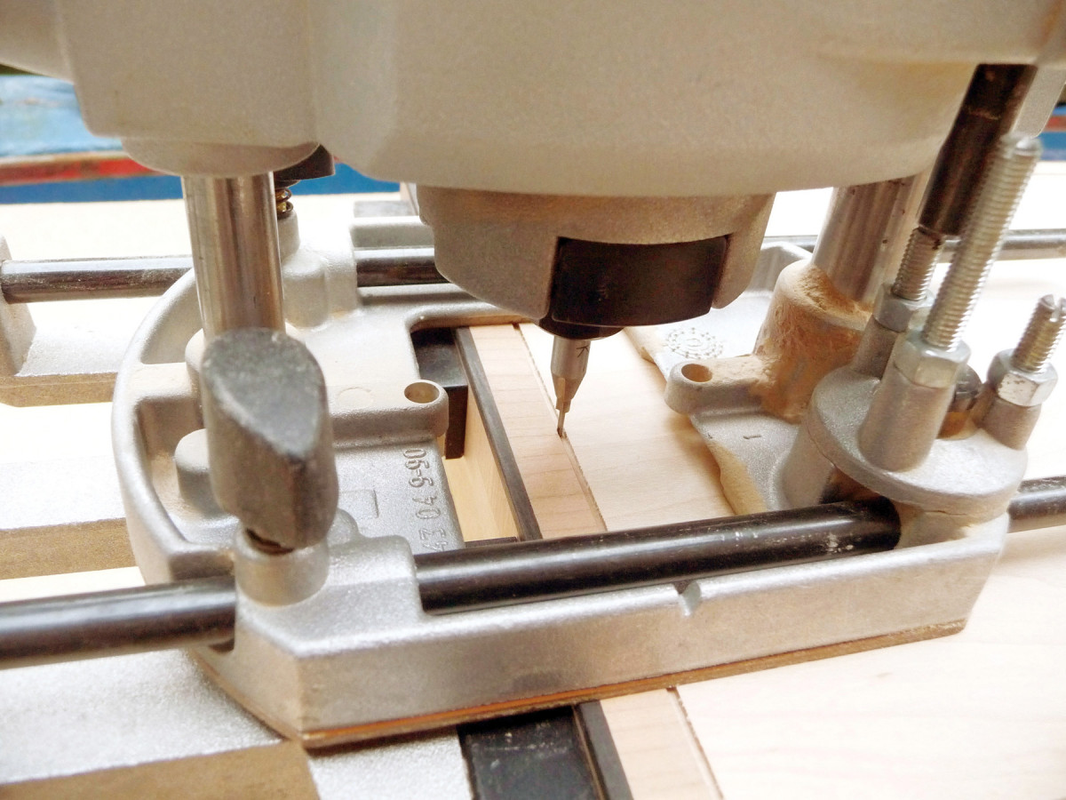 Rout grooves for the 1/16″ inner stringing (Photo 9).