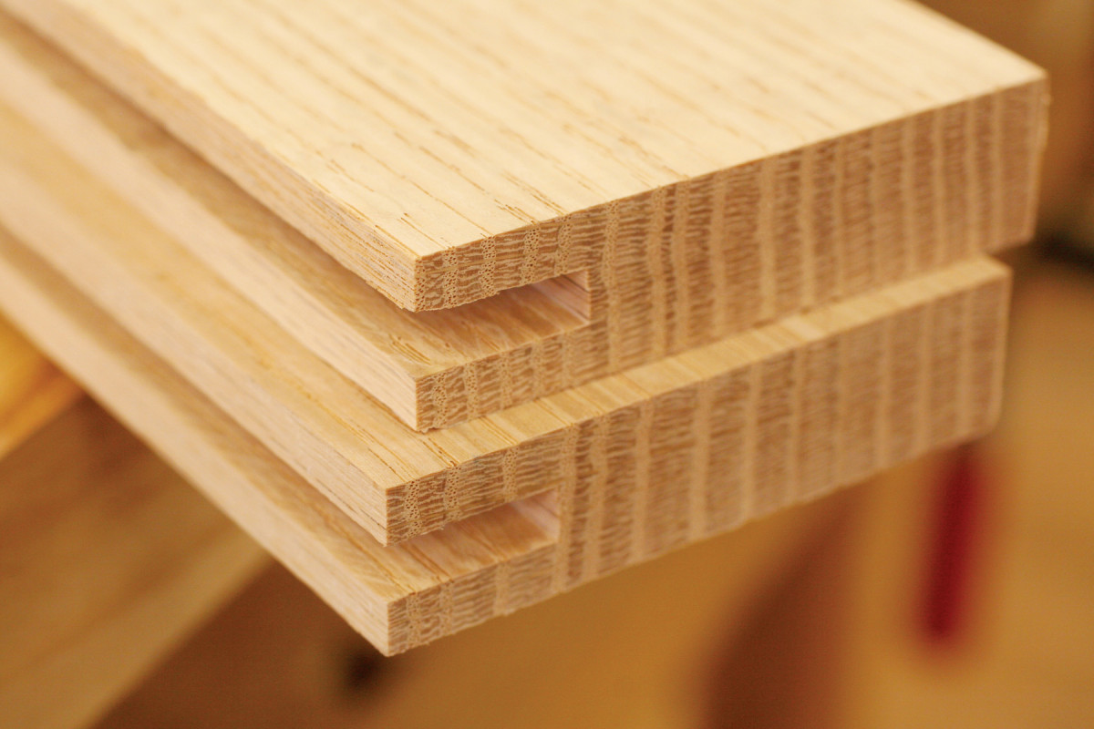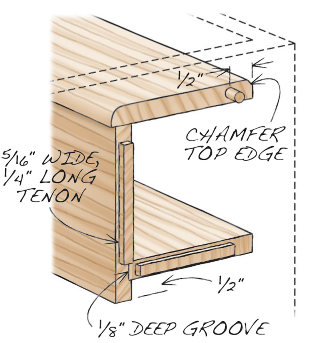 12. Make the chest’s lid. Plow grooves down the full length of the breadboard ends. While most of the chest is butternut, I make these pieces from red oak, for strength.
