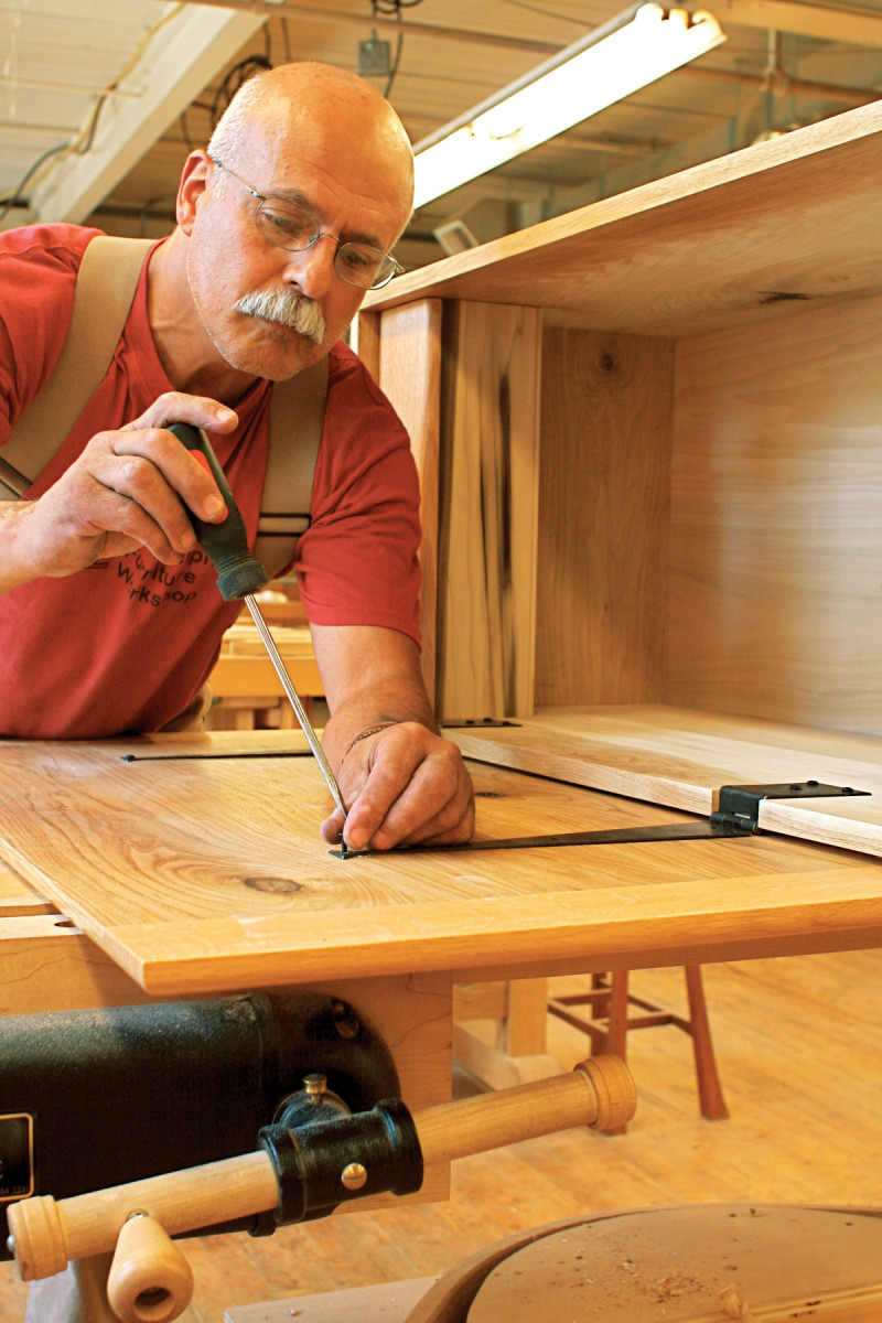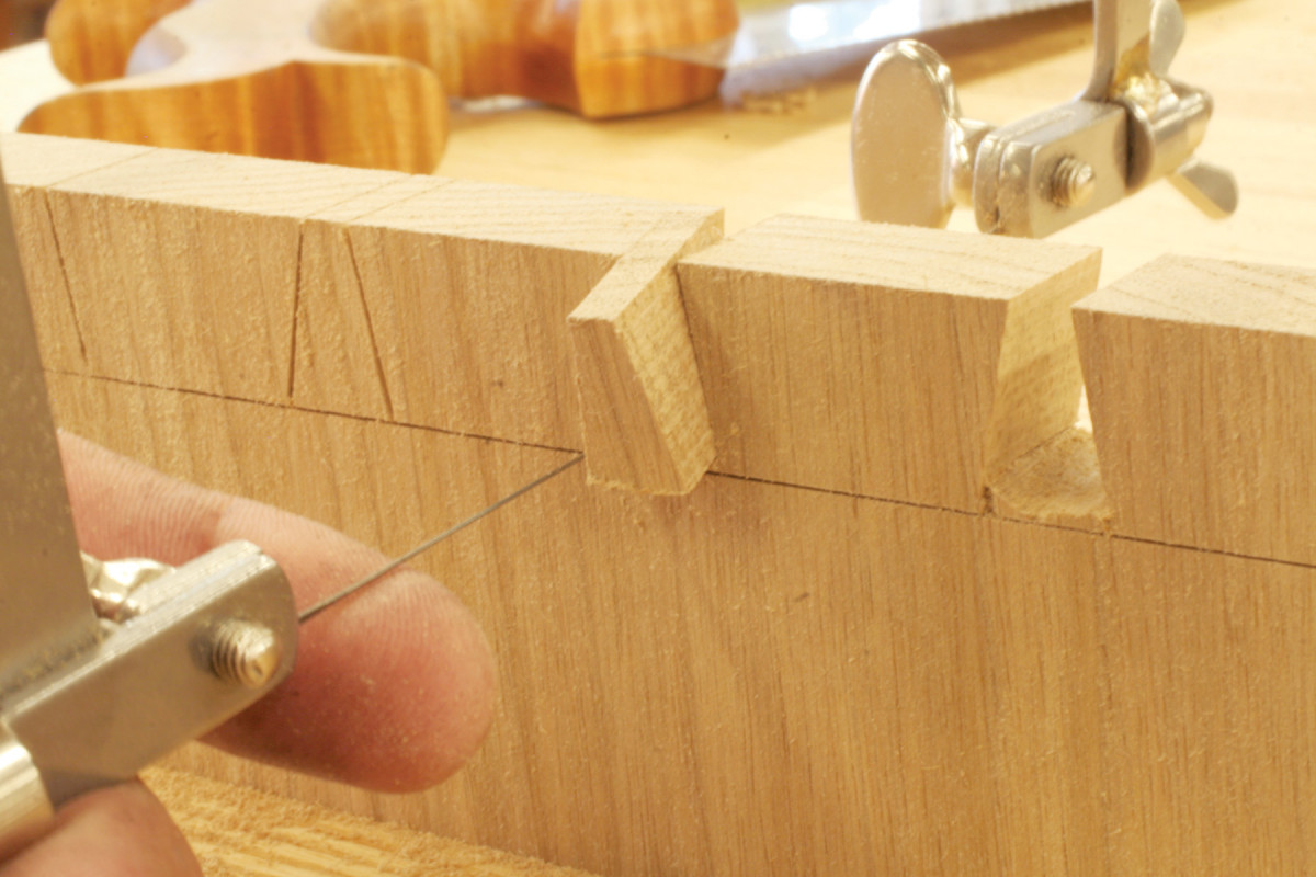 3. Cutting dovetails requires many careful steps; you can find out more about how I do it on the AW website. Here, I use a jeweler’s saw to remove most of the waste between the tails.