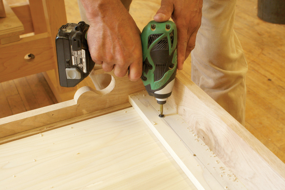10. Fasten the base to the bottom of the chest. Drill oversize holes in the stretchers, so the bottom is free to expand and contract.