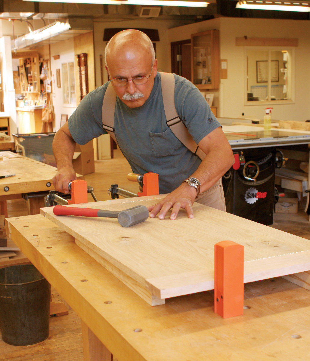 After the glue dries overnight, soften the squeeze-out with warm water and remove it with a putty knife or chisel. Plane all of the joints even (Photo 8). Plane all around the top and bottom edges to even them up as well.