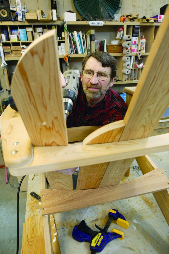 Now back to the project at hand: After getting acquainted at The New Yankee Workshop, Abram and I first inspected the original Adirondack he built, one based largely on a design his father had used years ago. It had weathered well and withstood the elements for more than a decade in continuous outdoor duty. He explained it was made from cypress, an excellent choice for outdoor projects, and he had laid in a supply for our new chairs.