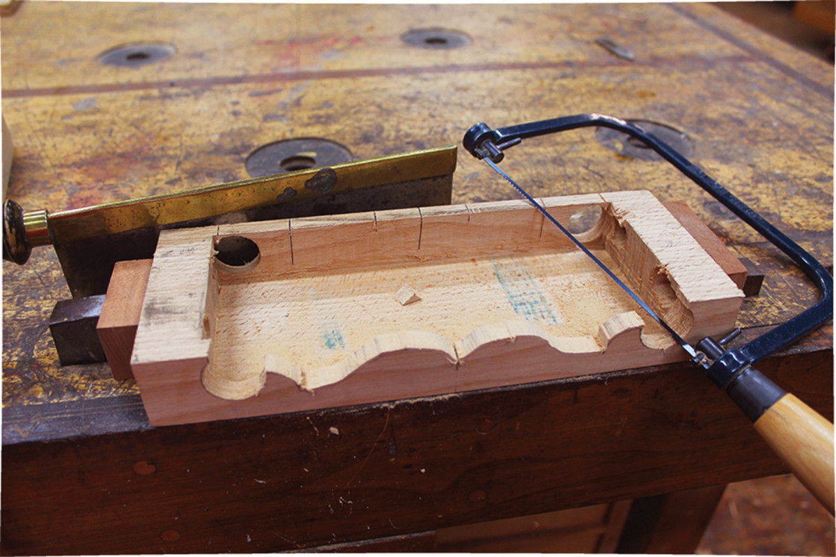 Next, I made a series of vertical saw cuts to the profile lines at every transition of the profile, followed by cuts with a coping saw to rough out the curves.