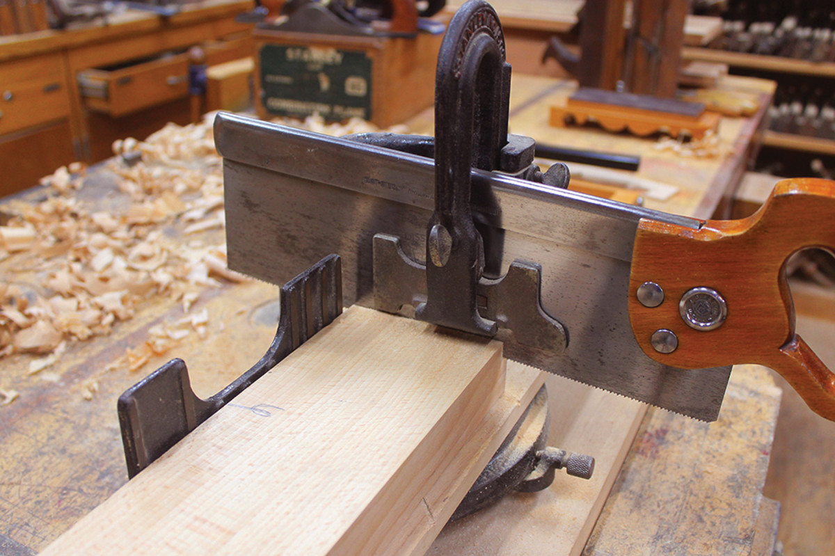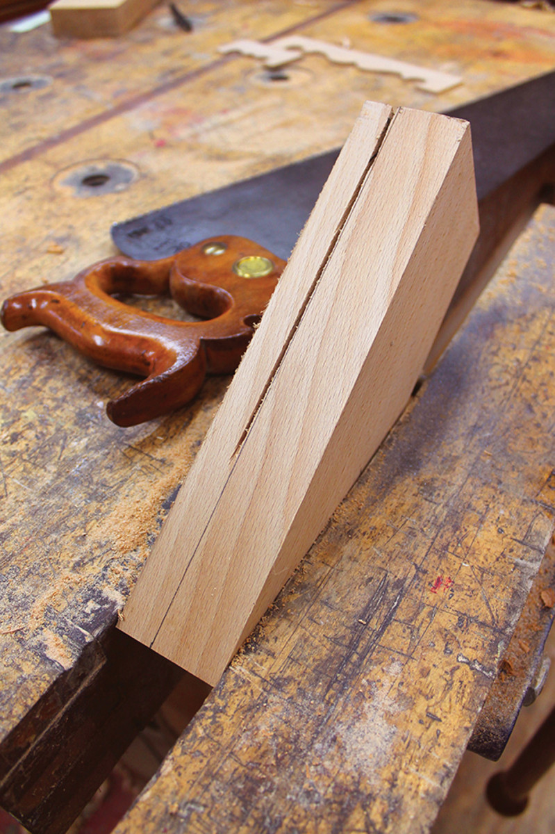The profile can be cut on a band saw or with a bowsaw. Alternatively, you can define the curves with a series of crosscuts to the profile line, then pare across the grain with a chisel and clean up the cuts with a fine rasp. Make the saw cuts shy of the midpoint junction, so that you can make that junction very sharp with some bevel-up paring. — WA