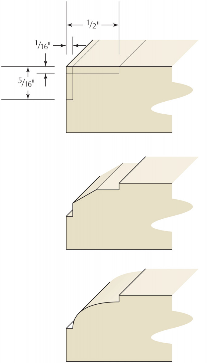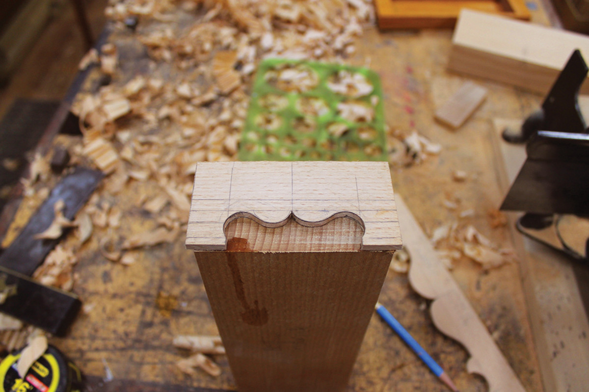 I blocked out the ovolo shape by eye, with a small shoulder plane held just off vertical.