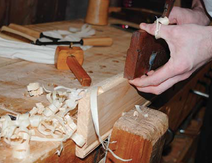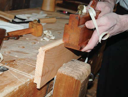The rabbet can also be cut with the rabbet plane using your fingers as a fence, as shown. This tool also cleans up rabbets cut with a chisel.