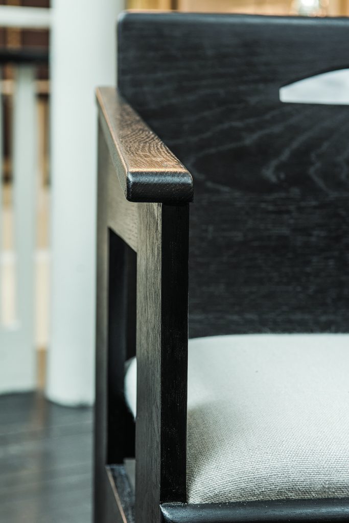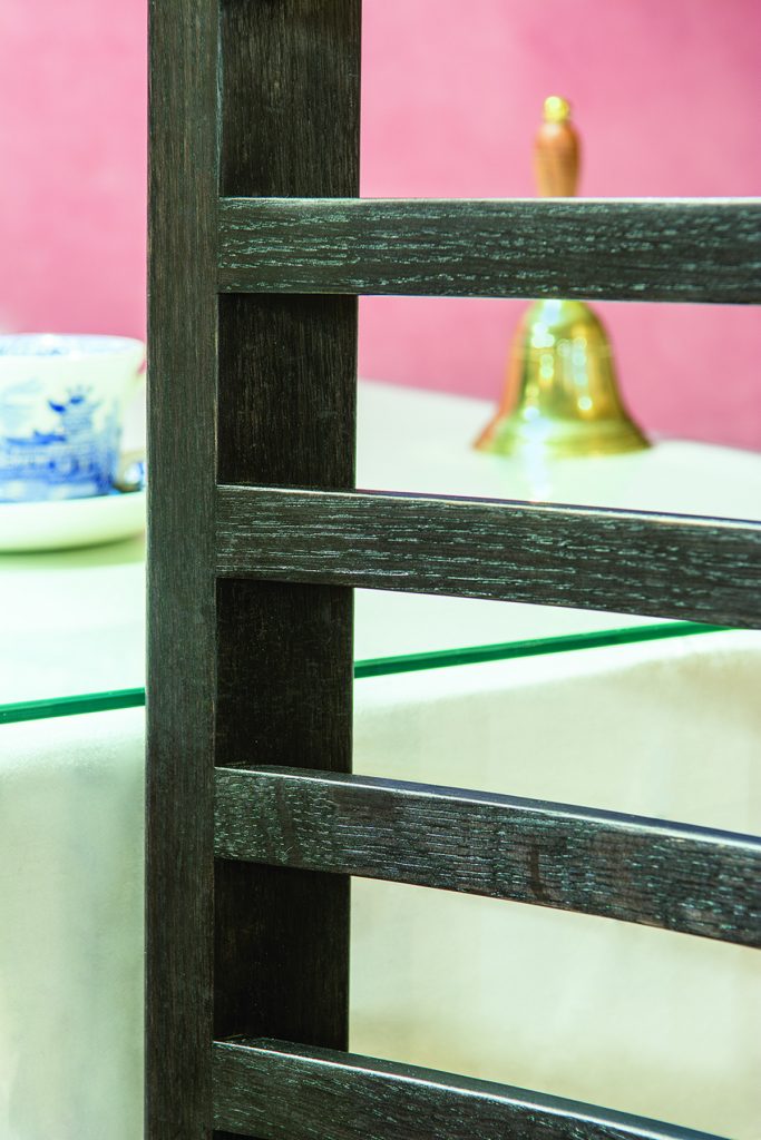 Determining the appropriate finishes for the furniture was a critical stage of the research, not least because the black-stained furniture had to be consistent while being produced by three different makers. A microscopic examination of a fragment of an original black stained Mackintosh stool led to the use of a black stain, black oil, and topped with black wax, which the Trust mandated all three furniture makers to use.