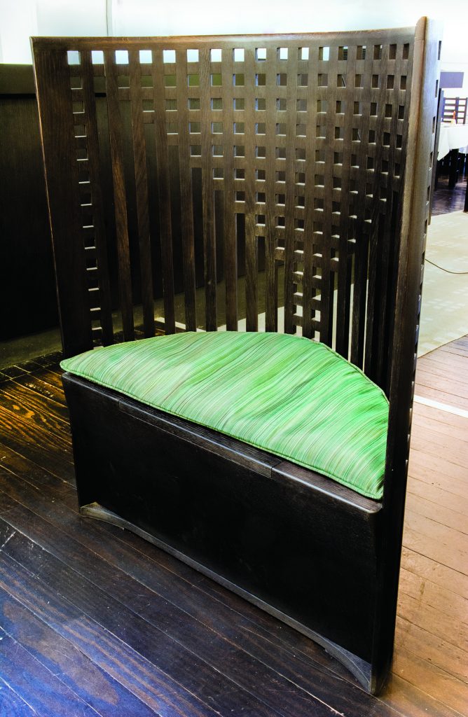 The booths of the Billard Rooms echo the black stained furniture of the Front and Back Saloon.