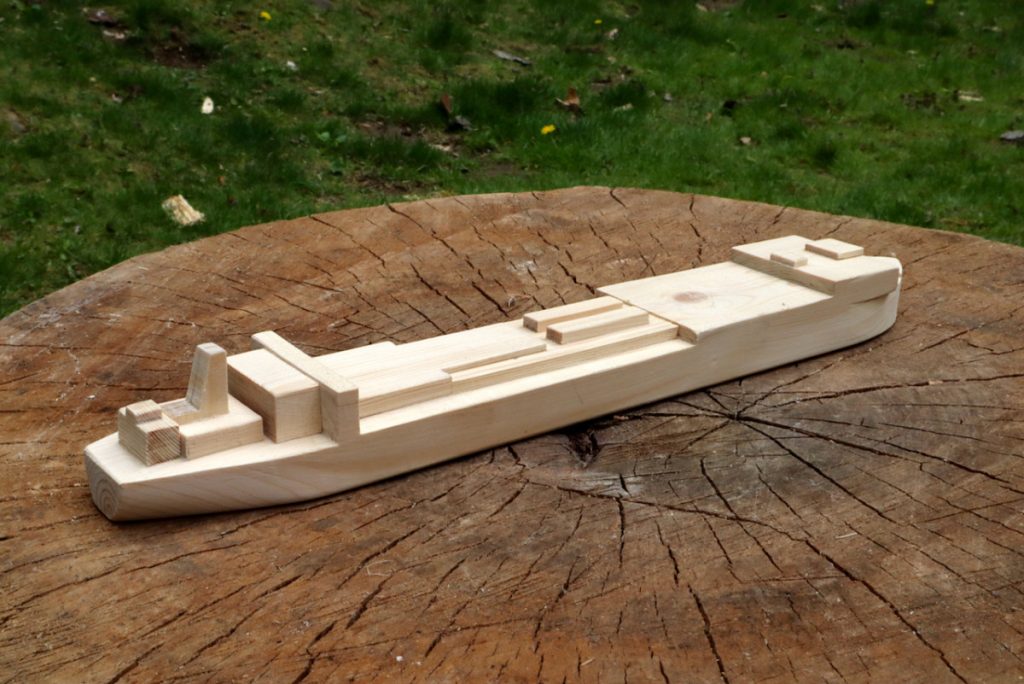 The smoke stack was constructed in a similar way, but unlike all the other parts, the grain orientation of the stack was chosen to be perpendicular to the deck (top to bottom) and not horizontal.