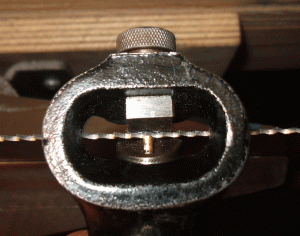 If your saw requires setting, begin by clamping the saw in a vise with the toothline about 2″ above the jaws. Starting at the heel of the saw, identify the first tooth set away from you. Place the saw set so the center of the hammer (the steel mechanism that bends the tooth over the anvil) aligns with the point of the tooth. Make sure the casting rests solidly on the toothline and squeeze the tool firmly. You will see the tooth bend ever so slightly away from you. Skip the next tooth and move on to the next tooth set away from you. Set it as you did before, and repeat down the entire length of the saw. Now flip the saw around in the vise and set the teeth you skipped on the first pass.