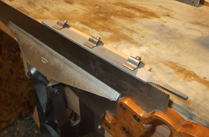 Jointing a saw every time you sharpen it ensures that the teeth are all the same height. It also creates a flat facet at the very point of each tooth that will guide your work in the filing step.