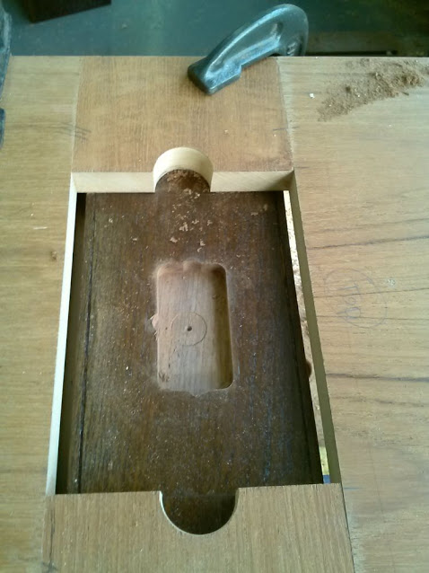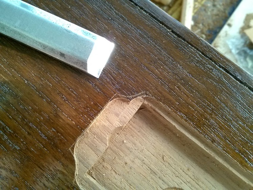 4. Using a bench chisel I cleaned the recess from excess wood and pressed the handle into place.
