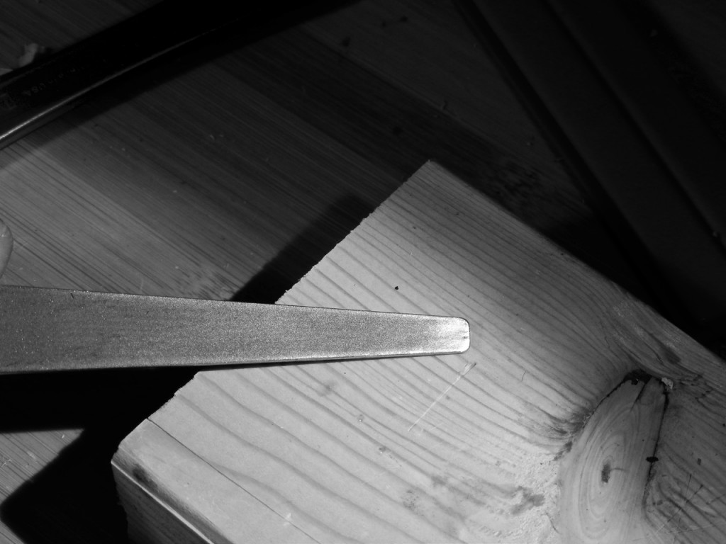 The first challenge with this method is that you need to abrade the two bevels while keeping them at a right angle to each other and maintaining a constant sharpening angle for each bevel (30°), all while doing this freehanded! From my experience this is a challenging task. Sharpening is not complicated if your blade has one bevel and you lead it over a wide stone using a honing guide, or when relying on a hollow grind methods – if you choose the freehand approach. But trying to pass – and balance – a wide and heavy stone or a light and flimsy file on a bevel that faces upward is more difficult.