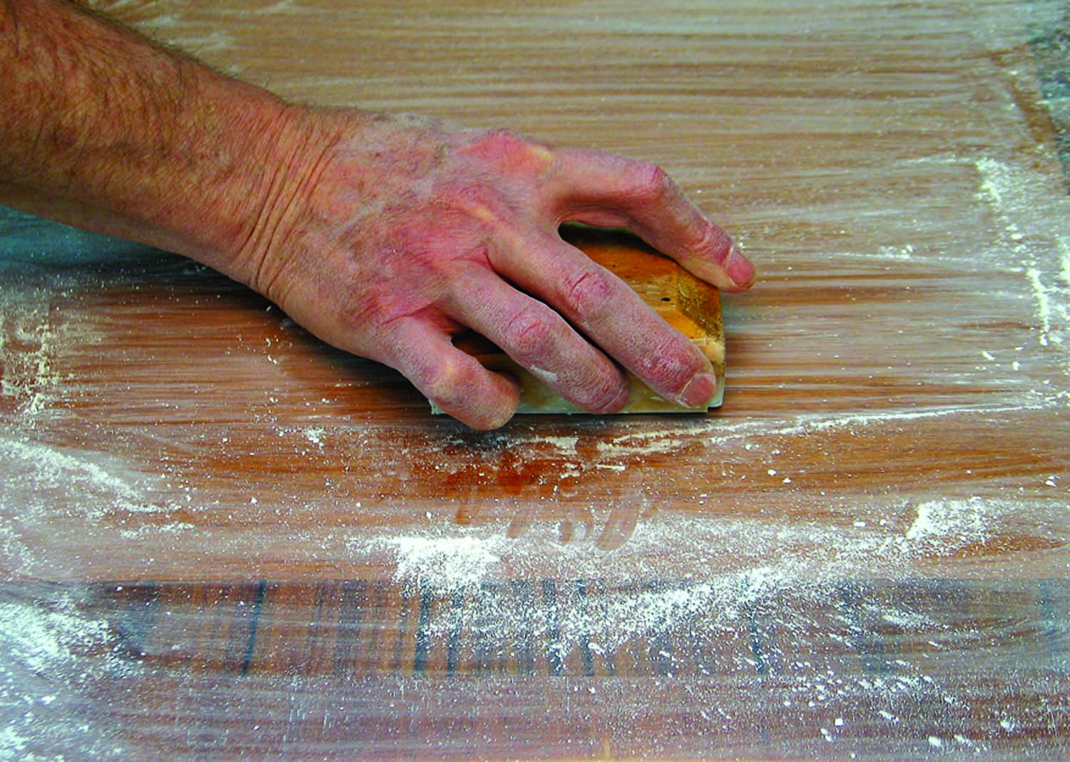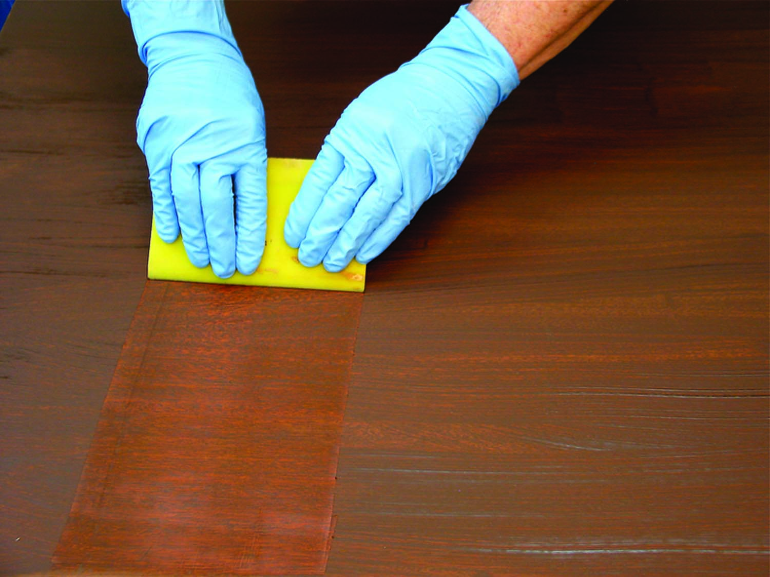 ■ If you don’t get all the filler removed before it begins to harden, you can remove it with solvent (mineral spirits or naphtha for oil-based and water for water-based) without also removing some of the stain.