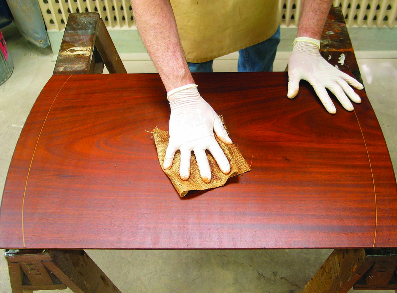 For instructions on sanding and rubbing a finish to the sheen you want, please refer to “Rub to Create a Great Finish” in the August 2006 issue (#56) or online at popularwoodworking.com/finishing.