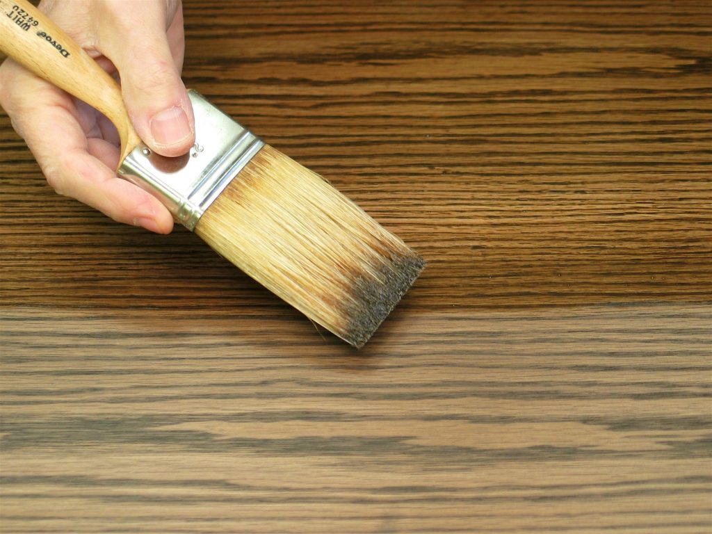 This may have happened to you. It’s surely happened to me. When you’re brushing a finish, the brush picks up some of the stain and lightens the wood. It’s even worse when the brush picks up so much stain that it leaves streaks.