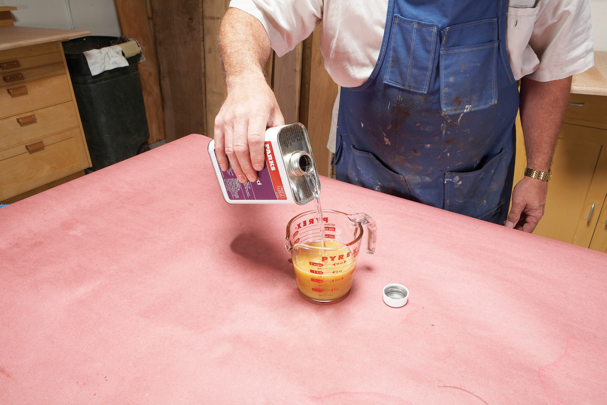 Thin your shellac before use. Store-bought shellac is typically a 3 lb. cut. Mix it 1-to-1 with denatured alcohol for a user-friendly 11/2 lb. cut.