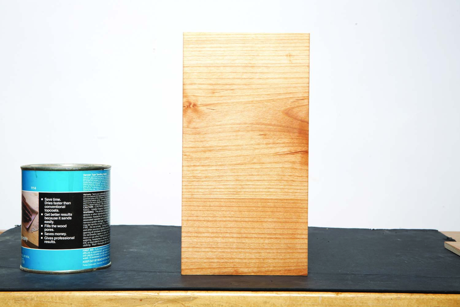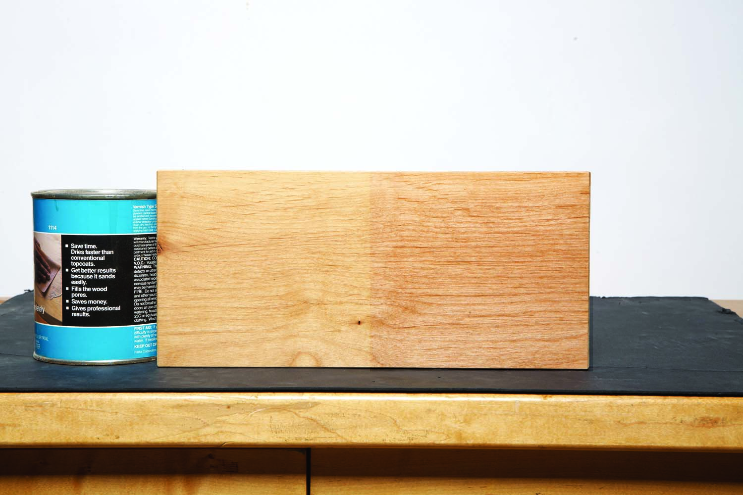 Photo 3B. A water-based poly minimizes red alder’s natural color and grain.