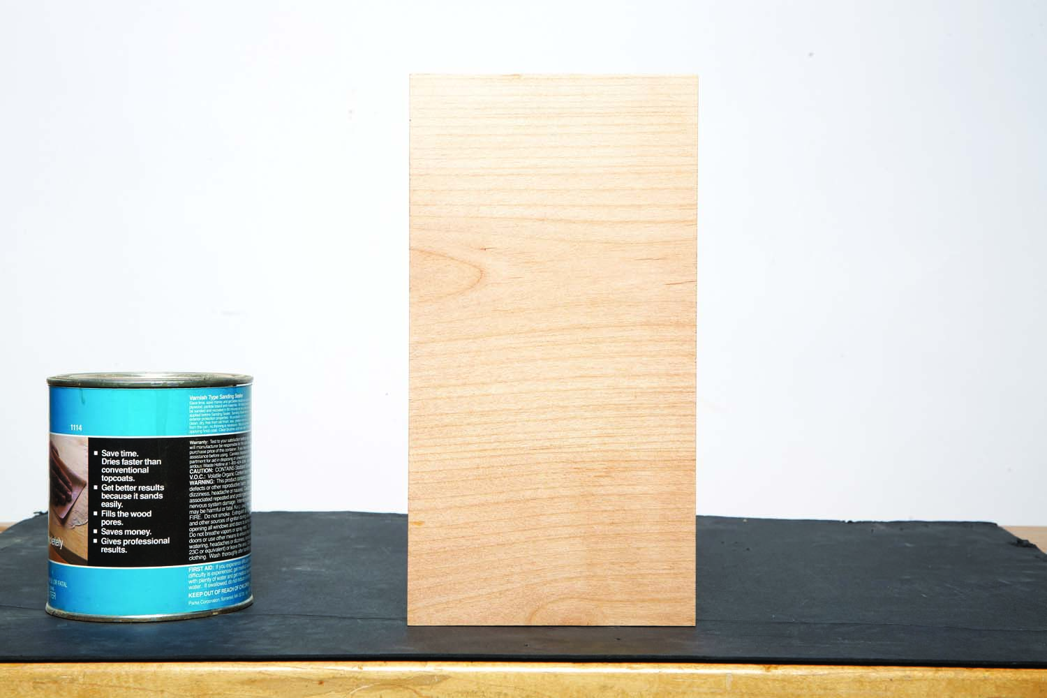 Photo 10. Step 1 Mix amber shellac in a 2 lb. cut. Step 2 Apply the first coat and let dry 20 minutes. Step 3 Apply the second coat and let dry 20 minutes. Step 4 Lightly sand with 400 grit and remove the sanding dust. Then apply one coat of satin water-based finish.