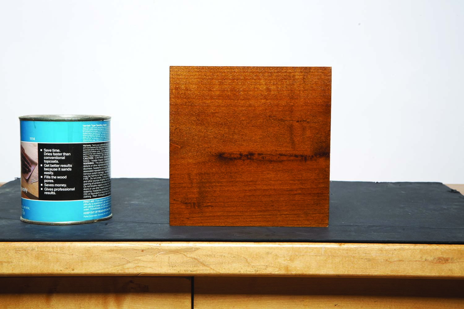 Photo 12. Step 1 Apply clear gel varnish generously and work it into the grain for a minute or two. Then rub off the excess. Step 2 Immediately wipe on General Finishes Candlelight gel stain and thoroughly rub off the excess. Then let dry overnight. Step 3 Apply your favorite topcoat. For the “natural cherry” alder table in the lede photo I chose two coats of Zinsser SealCoat and one coat of General Finishes High Performance Satin Top Coat.