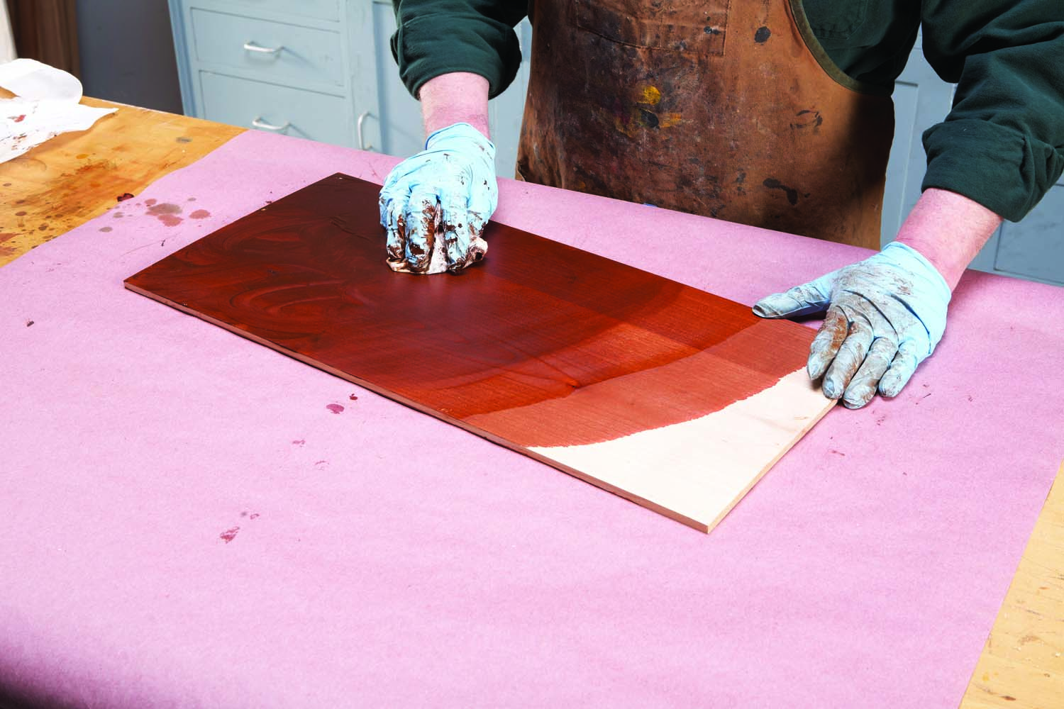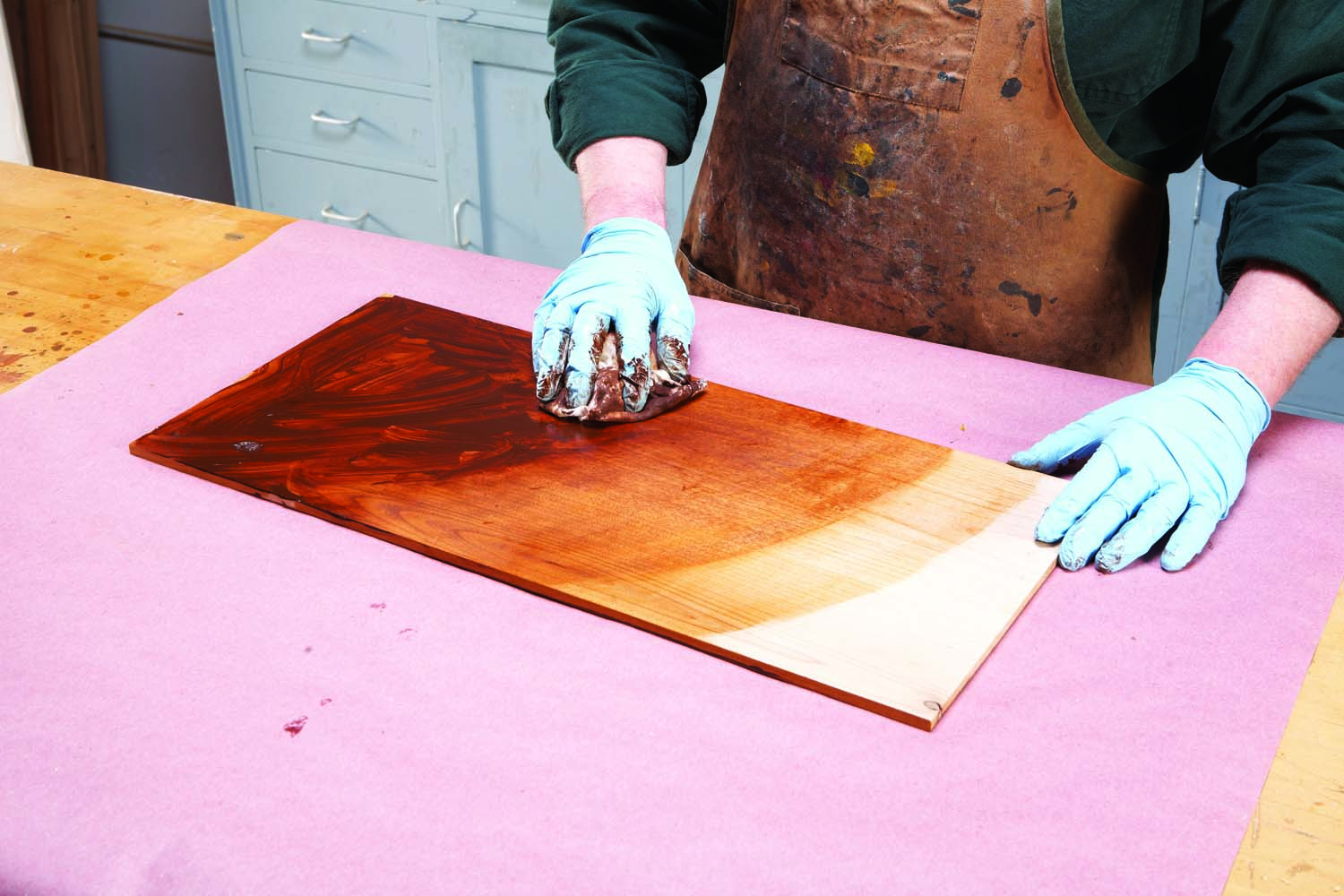 Photo 4. Easily change red alder’s appearance by using different types of stain alone and in different combinations. A liquid oil-base stain is used in this image.
