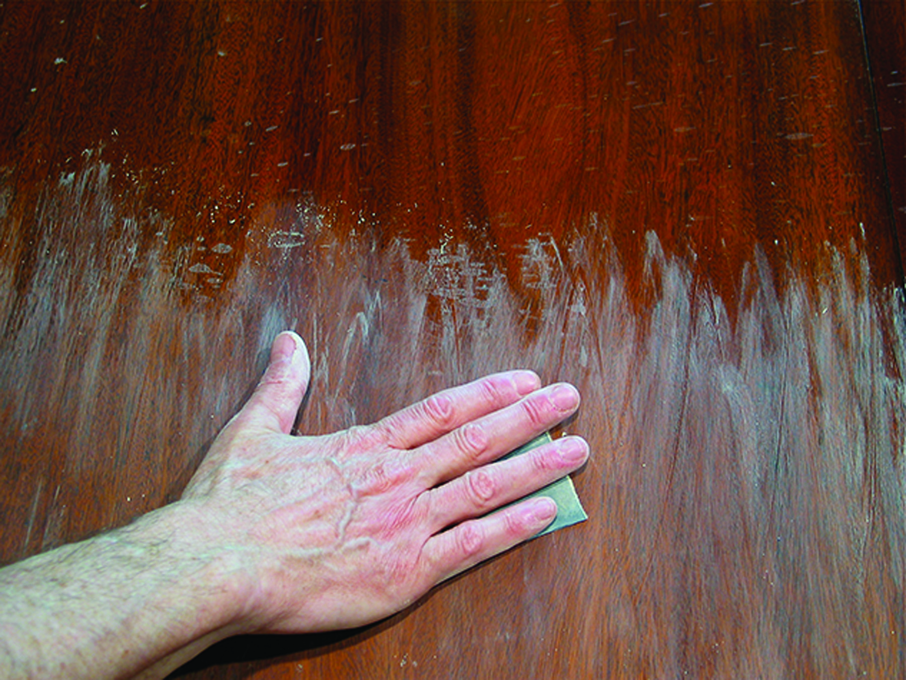 Sand to remove problems. Sanding removes surface crazing and other problems. Use the finest grit that will do the job efficiently. Here I’m using #600-grit sandpaper.