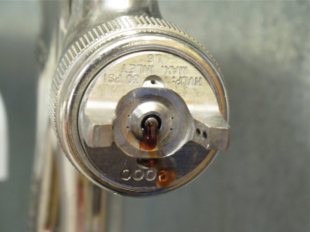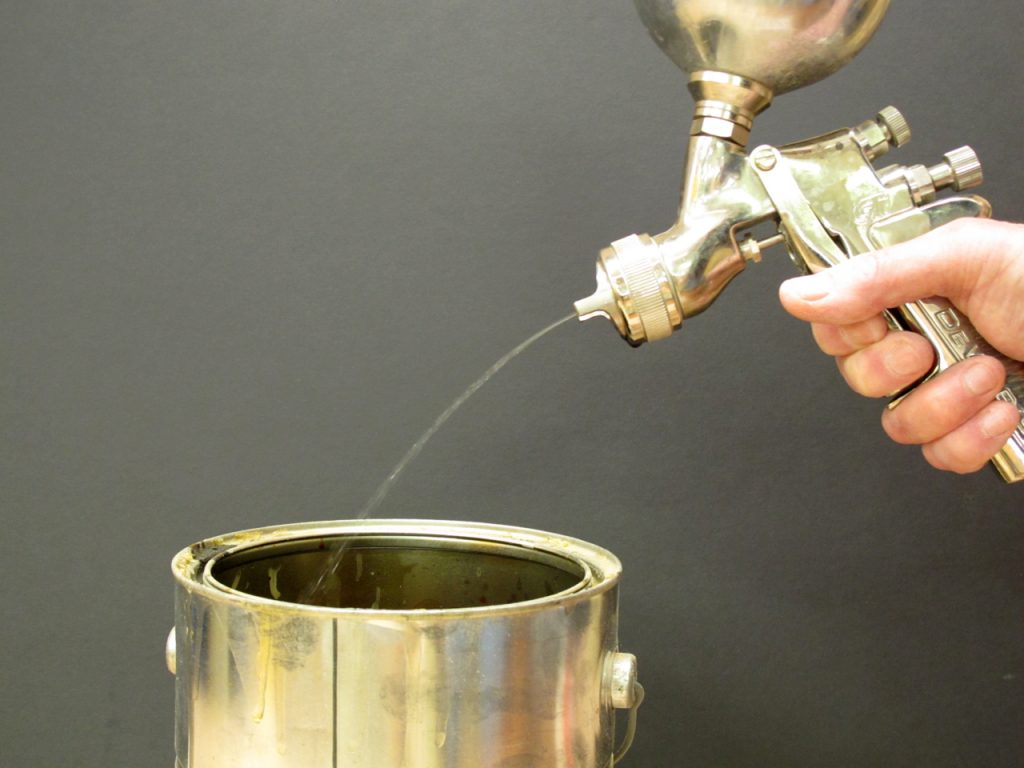 As I continued to pull the trigger, slowly emptying the pathway from the cup to the tip, the lacquer began thinning out until only the thinner came out in a stream that indicated the channel was clean.