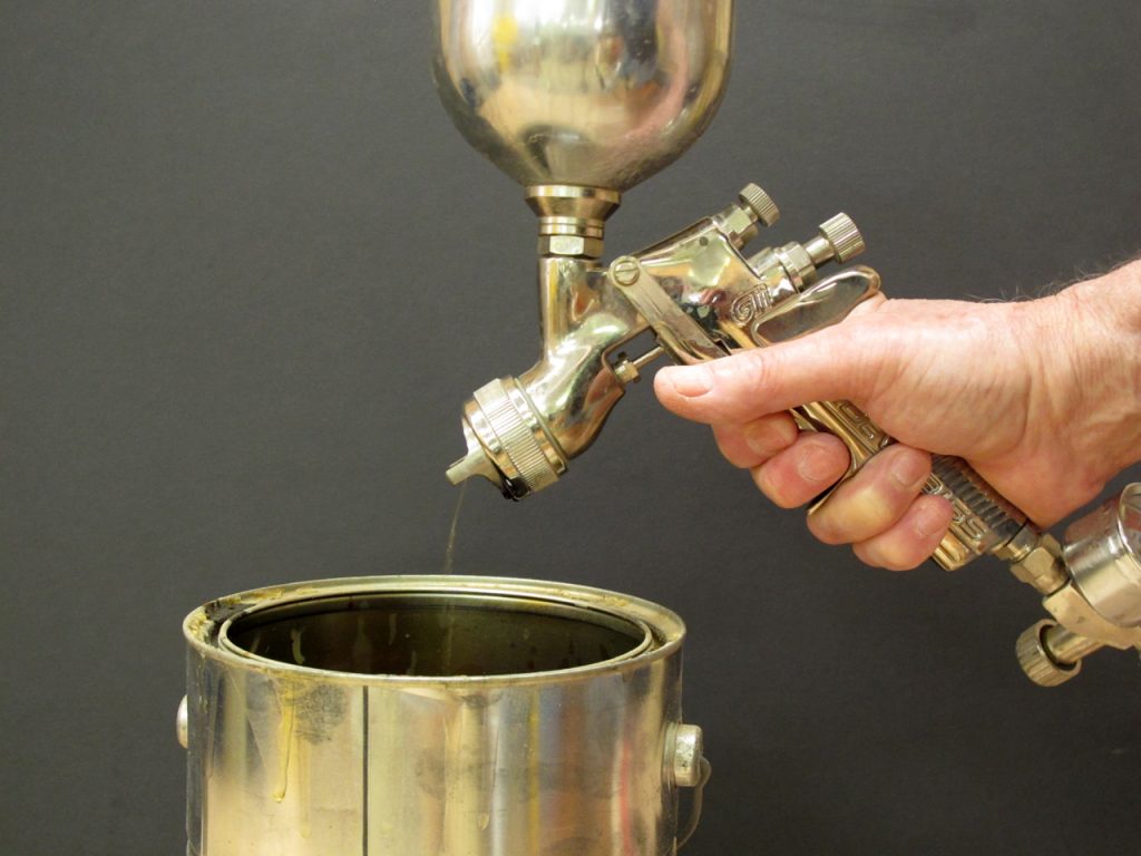 I’m quite sure I could do the same with shellac and alcohol, but I wouldn’t leave other finishes in a gun for very long because they could harden and be very difficult or impossible to clean.