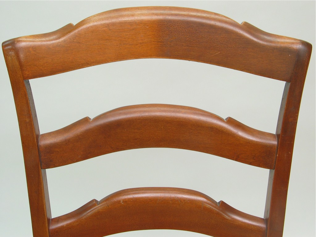 Sometimes great improvement can be achieved simply by cleaning (as I’ve done to the left side of the crest rail on a chair shown above, that had been in storage for many years). There are two types of dirt, water-soluble and solvent (paint-thinner) soluble, so you may need to use both types of cleaner. You can add soap to the water.