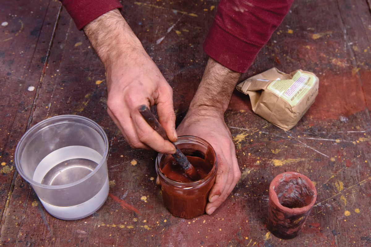 1) Mix it up. Mix paint one-to-one with hot water. The ratio of water to paint can vary by brand and color, but this is a good starting point. Stir it thoroughly with a stick then let it sit for an hour or so to allow any undissolved paint particles to soften.