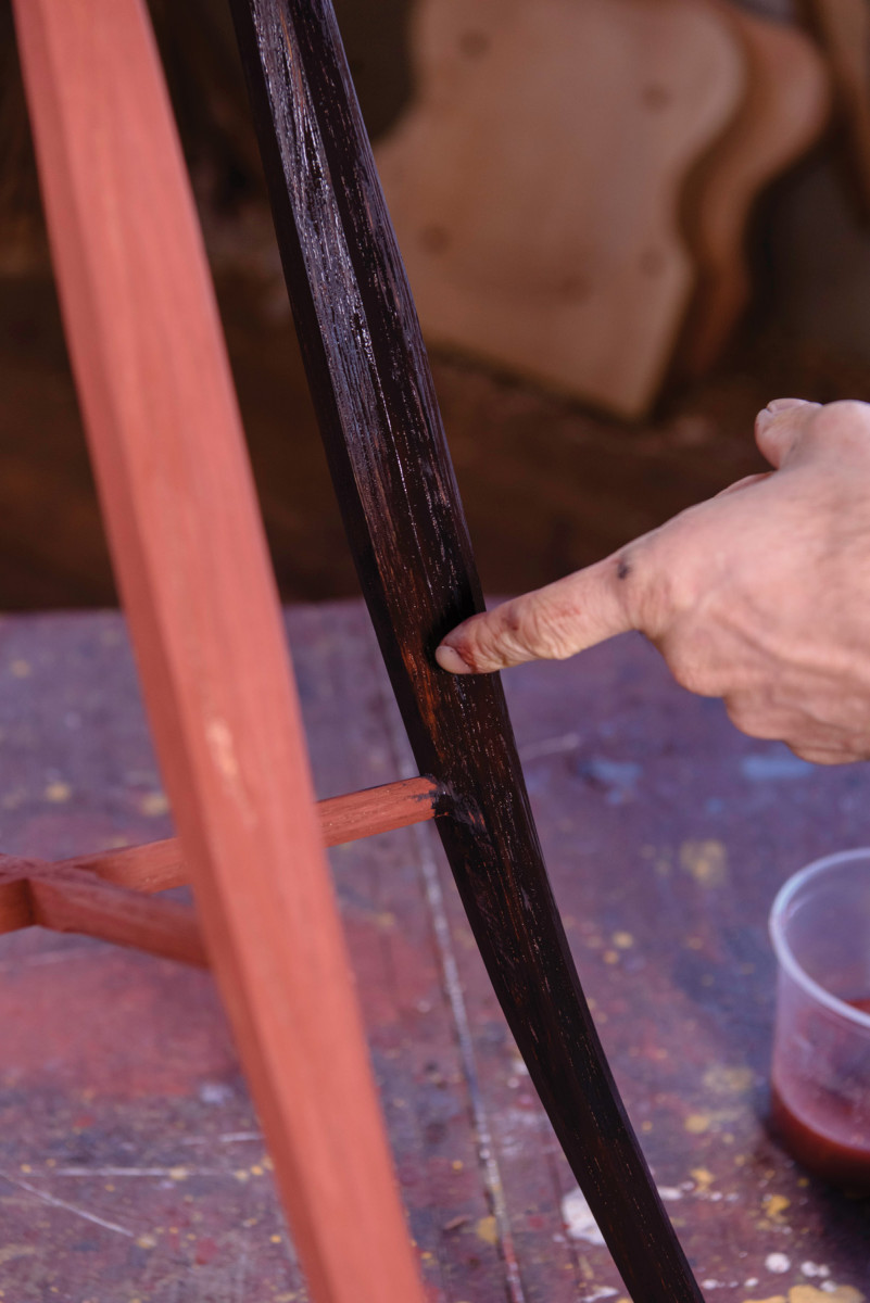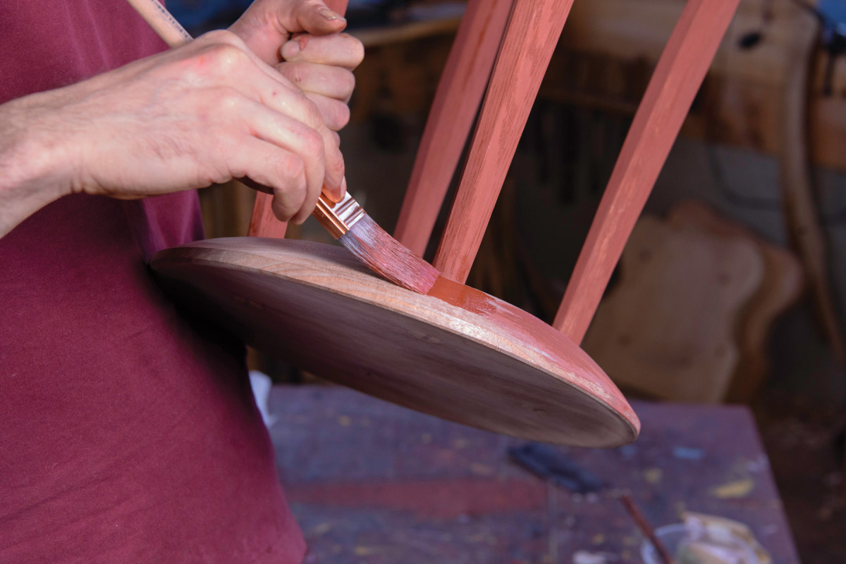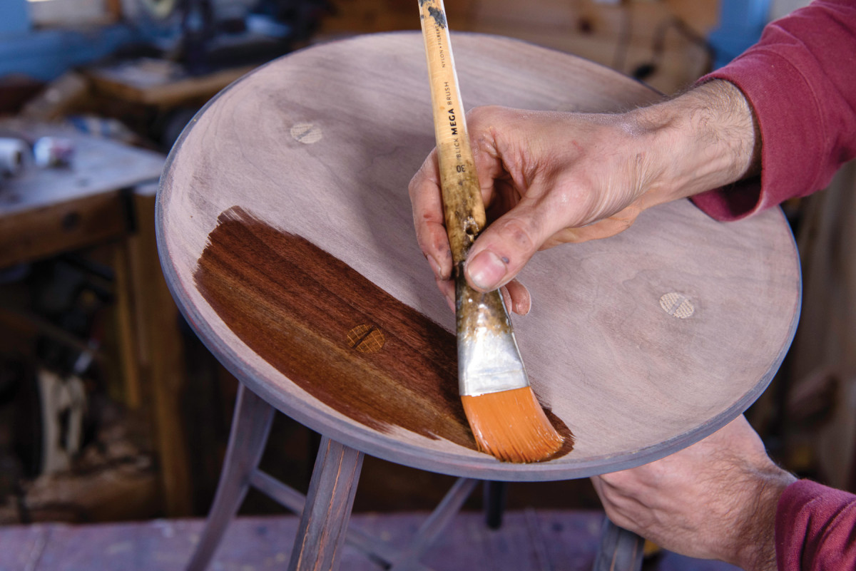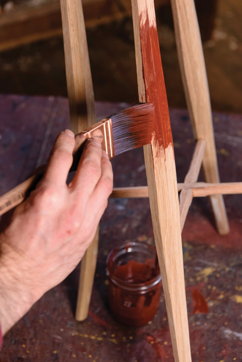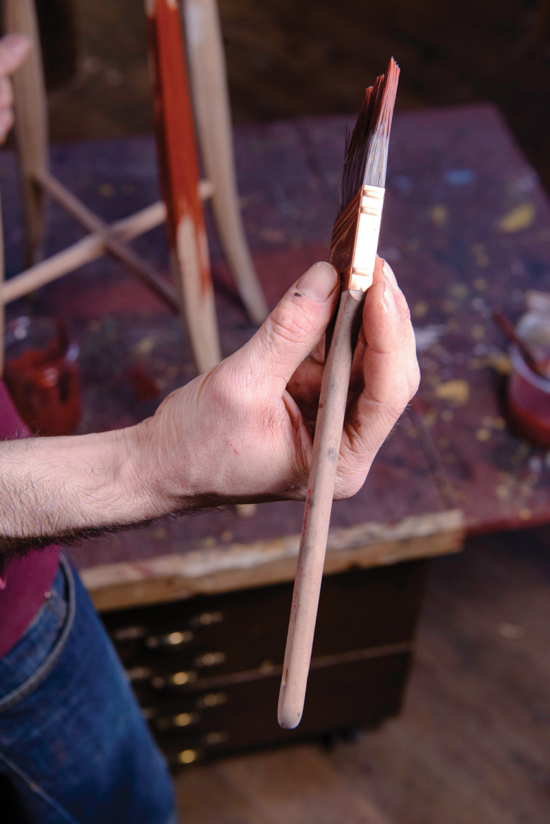 7) Light touch. Try to touch the wood gently with only the last 1⁄4″ of the bristles. This reduces splatter and leaves a smoother surface.