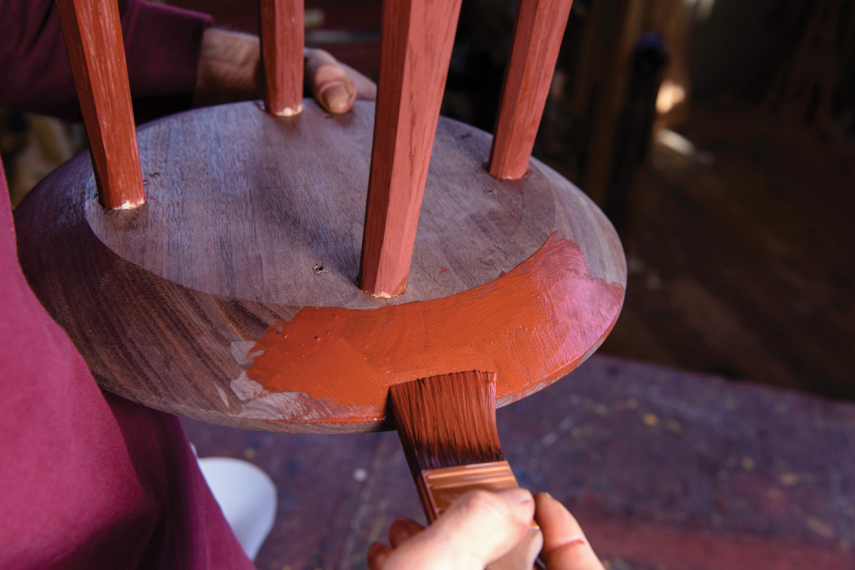 Paint can unify disparate woods, or add color and variety. It can even highlight beautiful woods. In this article, black over red paint provides a frame, showcasing this table’s unpainted, shellacked walnut top.
