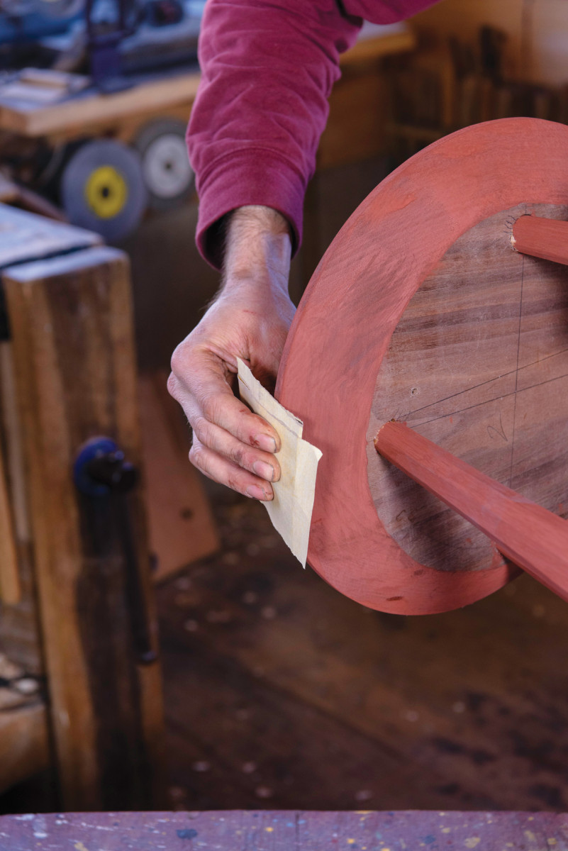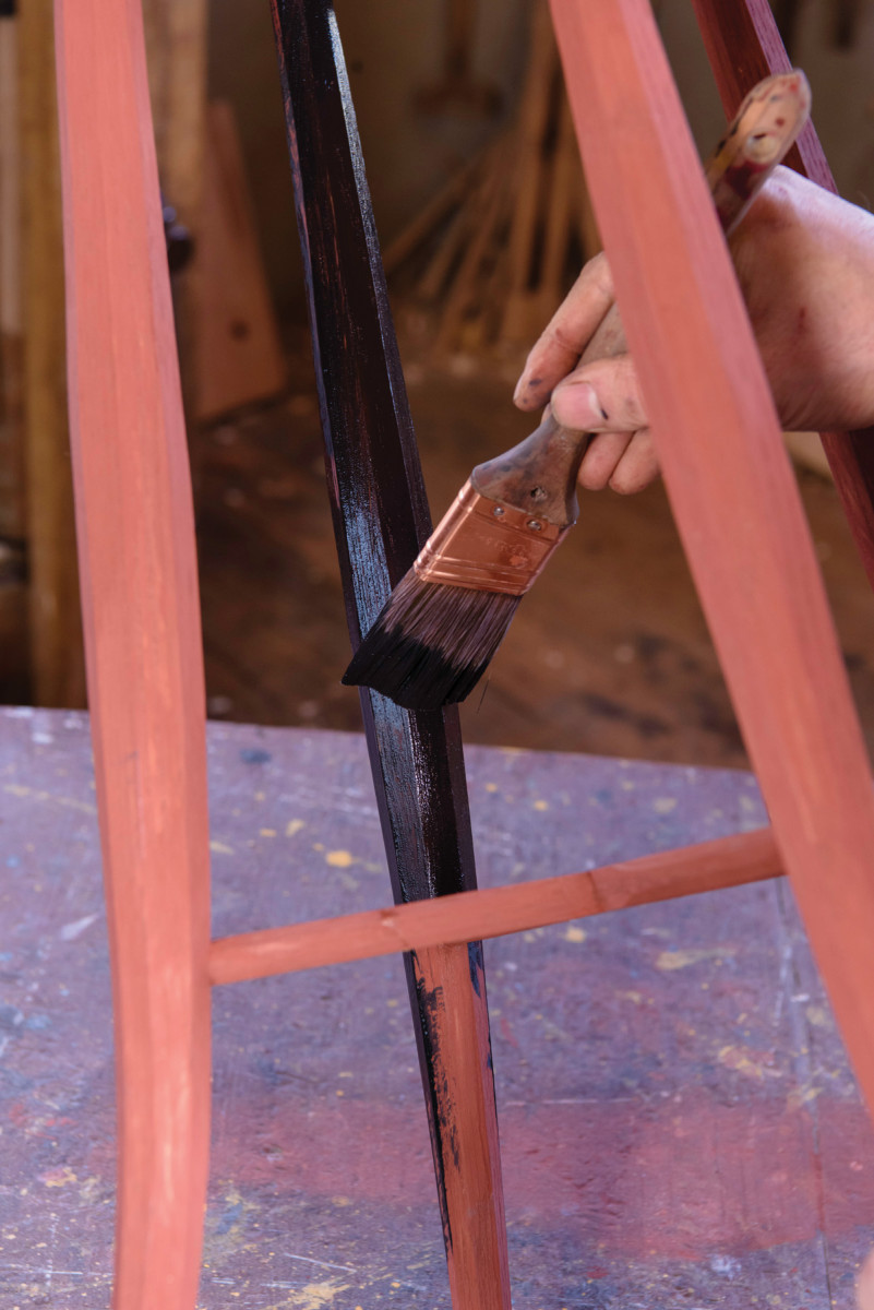17) Finishing touches. I use a thin mix of shellac as the finish for the unpainted top, as well as for the topcoat over the paint. A medium-dark shellac is nice over dark paints, but a light-colored shellac is better for lighter paints. Wiping varnish also works well.