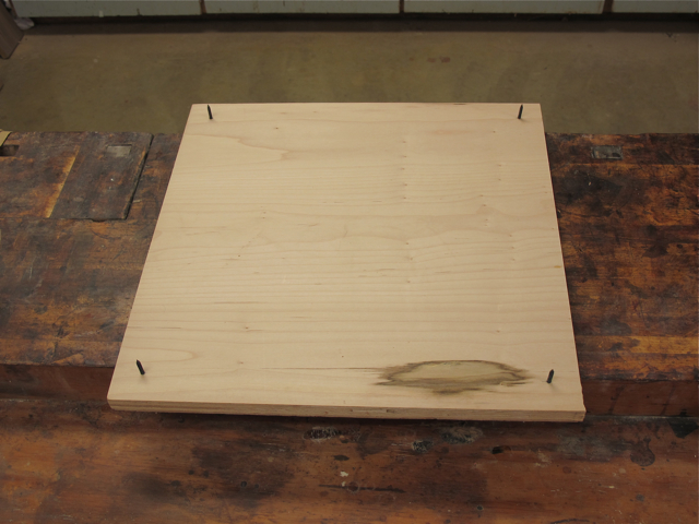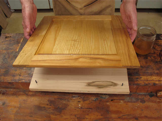Make a nail board approximately the size of your panel or cabinet door. Consider using drywall screws instead of nails.