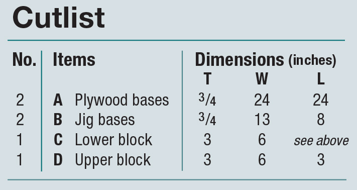 9-10 This shop-built jig holds the router bit exactly center. Disposable plywood guides are screwed to the jig, depending on the project.