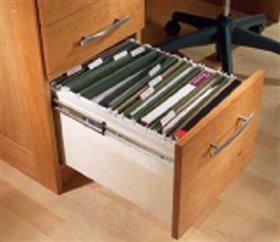 Three File Drawers…that accept hanging files give you the capacity for serious home office work. They operate on heavy-duty ball bearing slides.