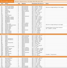 Sources(Note: This information may have changed since the story’s original publication date.) Woodworkers Supply, woodworker.com, 800- 645-9292, 3-1/2-in. brass swan neck bail drawer pull, #940480, $5.70 ea.; 2-1/4-in. brass drop door pull, #115892, $8 ea. Glass Source, theglasssource.com, 800-588-7435, Three panels of double-strength tempered glass, approx. 13-5/8 in. x 54-1/8 in., $25 ea. Woodworkers Hardware, wwhardware.com, 800-383-0130, 14-in. full-extension drawer slides, #KV4100P14, $11.13 a pair; Connecting screws for coupler bolts, #H267.00.720, $2.25 for 20; Sleeves for coupler bolts, #H267.00.913, $4.40 for 20; 5-mm spoon shelf supports, #HB214, $2.20 for 20; Connecting screws for coupler bolts, #H267.00.720, $2.25 for 20; Sleeves for coupler bolts, #H267.00.913, $4.40 for 20. 5-mm spoon shelf supports, #HB214, $2.20 for 20; Grommets for 5-mm shelf supports, #KV0326, $2.80 for 20; Glass retainer clips, brown, 5/16-in. tab, #HB21114, $3.80 for 20; 3/8-in. inset brass hinge, #A07565T1077, $4.43 a pair. Rockler, rockler.com, 800-279-4441, 7/32-in. self-centering bit (for shelf-support grommets), #39342, $20. MLCS, mlcswoodworking.com, 800-533-9298, 5/8-in.-dia. core box bit, #6420, $14 ea.; 3/8-in. rabbeting bit, #7691, $15 ea.; 3/8-in.-rad. round-over bit, #8654, $15.50 ea.; 1/4-in.-rad. roman-ogee bit, #8661, $21 ea. Bosch, boschtools.com, 877-267-2499, Raised-panel router bit, #85639M, $100 ea. Freud, freudtools.com, 800-334-4107, Roman ogee bit, #38-106, $27 ea. 3/8-in. rabbeting bit, #32-102, $21 ea.; 3/8-in. round-over bit, #34-124, $22 ea.; 1/2-in.-dia. flush-trim bit, #42-110, $14 ea. Amana, amanatool.com, 800-445-0077, Tongue-and-groove set (includes one shank arbor, two cutters and two bearings), #55400, $54 ea.; 5/8-in. core box bit, #45916, $28 ea. Minwax, minwax.com , 800-523-9299, Jacobean Wood Finish stain, #2750, $8 per quart. Woodmaster, woodmastertools.com, 800-821-6651, Planer molder machines, $1,400 to $3,400.