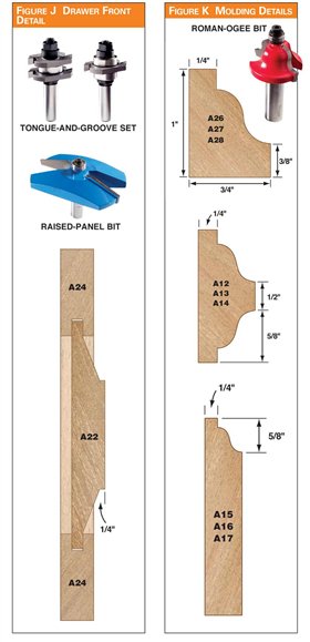 Fig. J & Fig. K: Drawer Front Detail & Molding Detail |