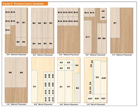 Start with the Drawer Base1. Assemble the drawer base with biscuits, screws and glue. (Fig. A, below; Fig. D, below). The bottom and subtop (A1) are identical. Set the inner divider panels (A2) flush with the back edge of the subtop and bottom, leaving a 1/4 in. space at the front. This space provides some clearance behind the drawer fronts. The side divider panels (A3) are set flush at the front and back of the subtop and bottom. After these parts are assembled, glue and clamp the fillers (A4) into place and add the spacer blocks (A5) to the front bottom edges of the vertical dividers (A2). 2. Add the walnut end panels (A6) to the drawer base (Photo 1). The end panels should extend 1/4 in. behind the base bottom and subtop. This creates a lip for the back (A25) to fit into. 3. Join the wide bottom rail (A7) to the two side stiles (A8) with biscuits and attach this three-sided assembly to the plywood drawer base. Next, glue the narrow top rail (A9) directly to the front top edge of the drawer base between the side stiles (A8). Don’t worry if the joint between these parts isn’t perfect; a molding will cover it. 4. Attach the angled corner boards (A10) with cauls and clamps (Photo 2; Fig. H, below). I used my jointer to create the beveled edges on these corner boards, but a fine-tooth blade in your tablesaw or a chamfering bit in a router table will also work. Using the dimensions from the Cutting List, page 55, will create corner boards that are slightly wider than needed so they will have a small overhang on each side when installed. The overhang makes fitting easier and is easily sanded off after the glue dries. Starting oversize is better than being undersize, which would expose the core of the plywood end panels (A6). 5. Add the base top (A11) to the drawer base. Leave it slightly oversize at the front and the ends and flush-trim it to match the base below (Photo 3). The back edge of the top should be flush with the back edges of the end panels (A6). 6. Use a roman ogee router bit (see Sources, below) in your router table to create the edge molding (A12, A13, A14) and the baseboard molding (A15, A16, A17) (Fig. K, below, for details on these moldings) 7. Attach the edge molding and baseboard molding with glue and a few brad nails. The miters on the baseboard use biscuits for alignment on the wide mitered joints. Note that the baseboard overhangs the bottom edge of the drawer base by 3/4 in. 8. Screw the feet (A18) to the bottom of the drawer base. 9. Next, build the drawer boxes (A19, A20, A21). I built the drawers out of birch plywood and joined them with biscuits. This is simple and fast, but you can use any method you choose. The drawer bottoms (A21) fit in a quarter inch deep dado. Install the drawers on full-extension drawer slides (see Sources, below). 10. Make the raised-panel drawer fronts (A22, A23, A24). I routed the raised panel so it stands proud of the drawer frame for a bolder look (Fig. J, below). 11. Screw the drawer front to the drawer boxes (Photo 4). 12. Screw on the back panel (A25).